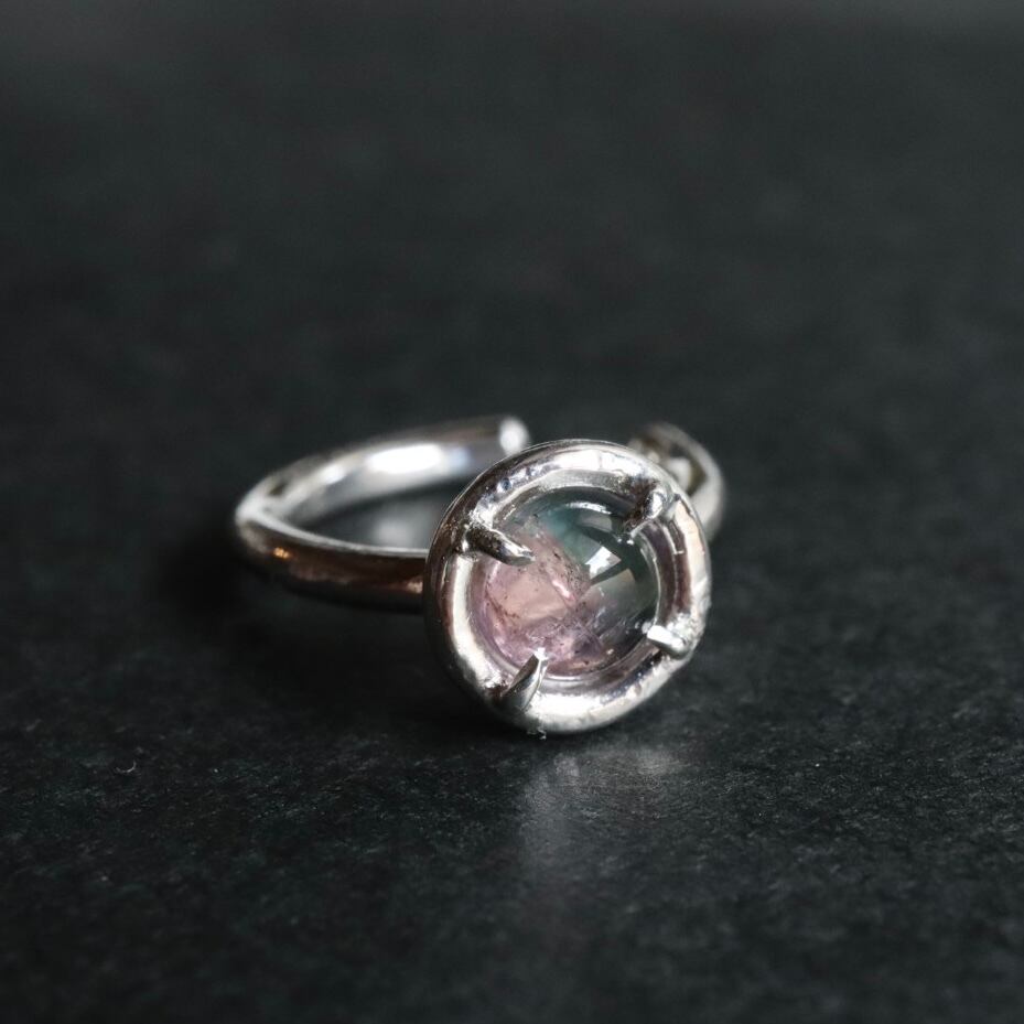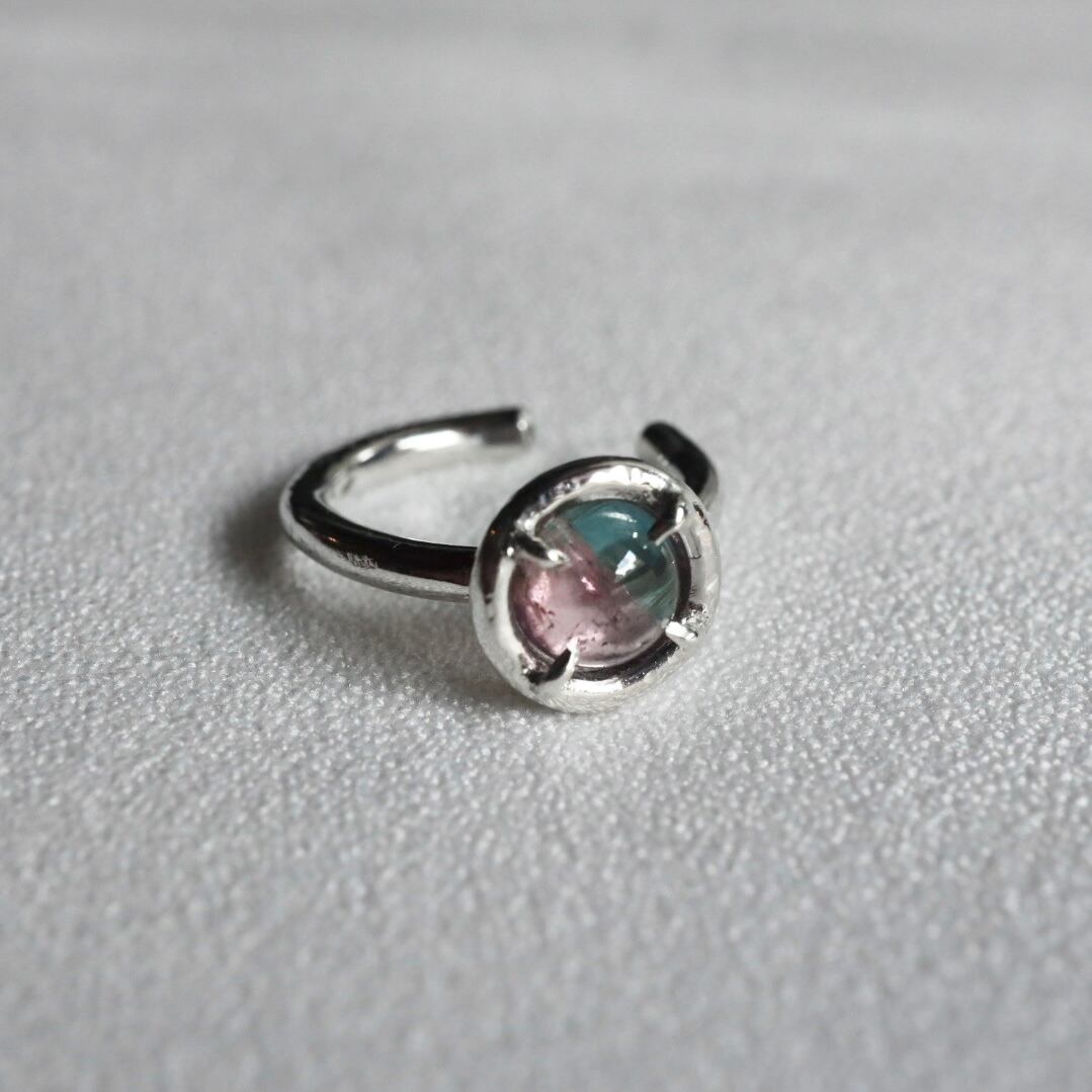グリーンとピンクのバイカラートルマリンをあしらったイヤーカフです。