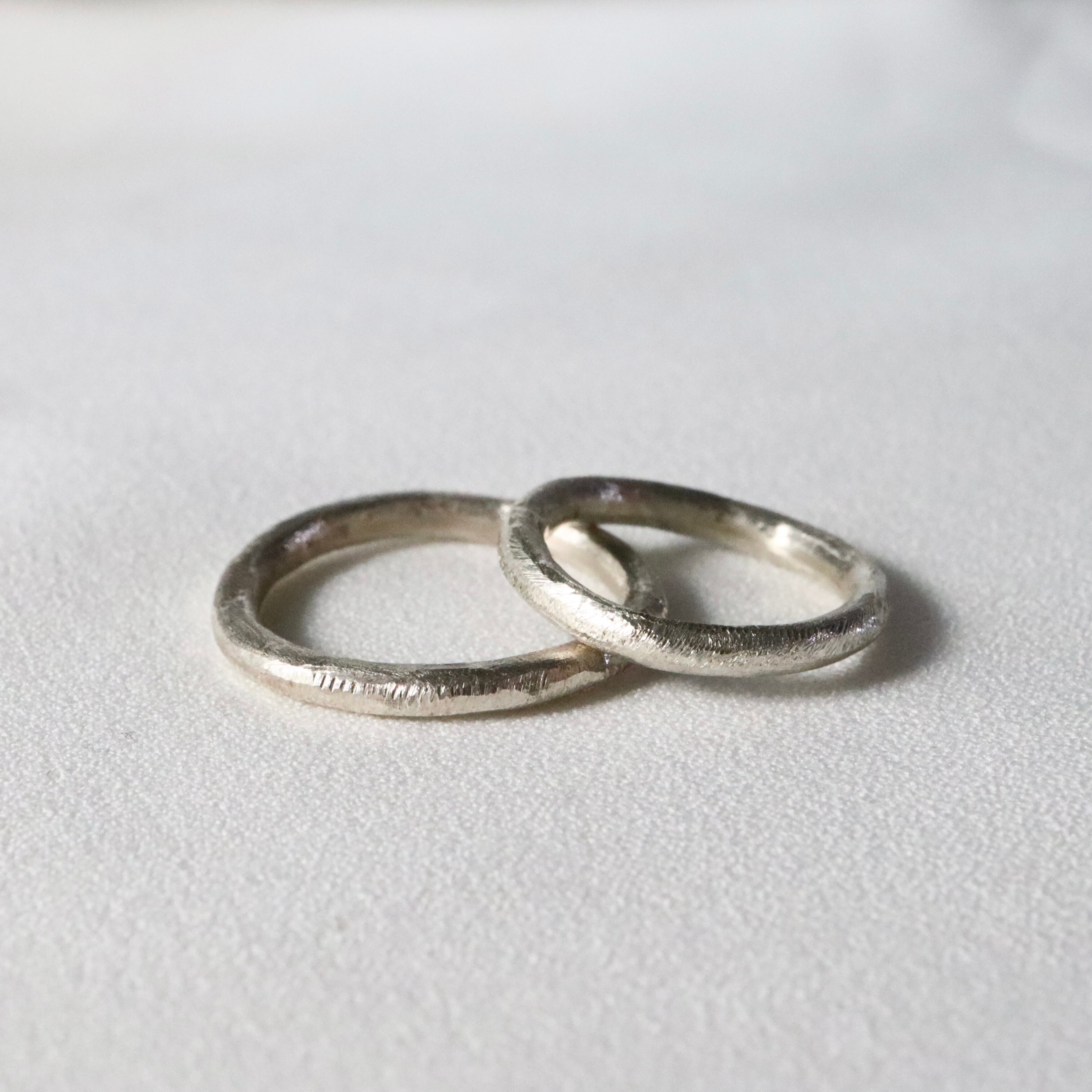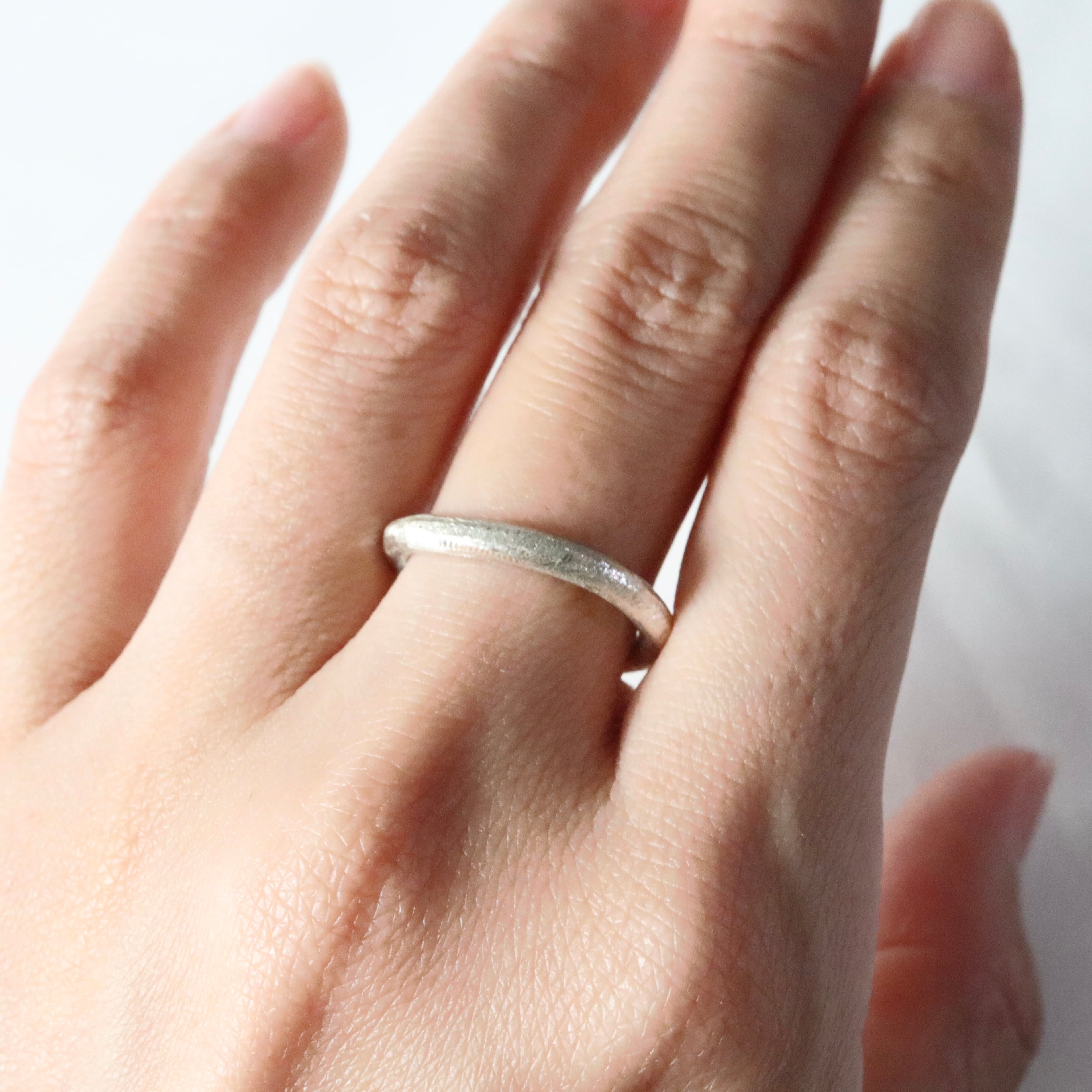 ざらりとヤスリで削った部分をあえて残し、少し歪みもあるリングです。