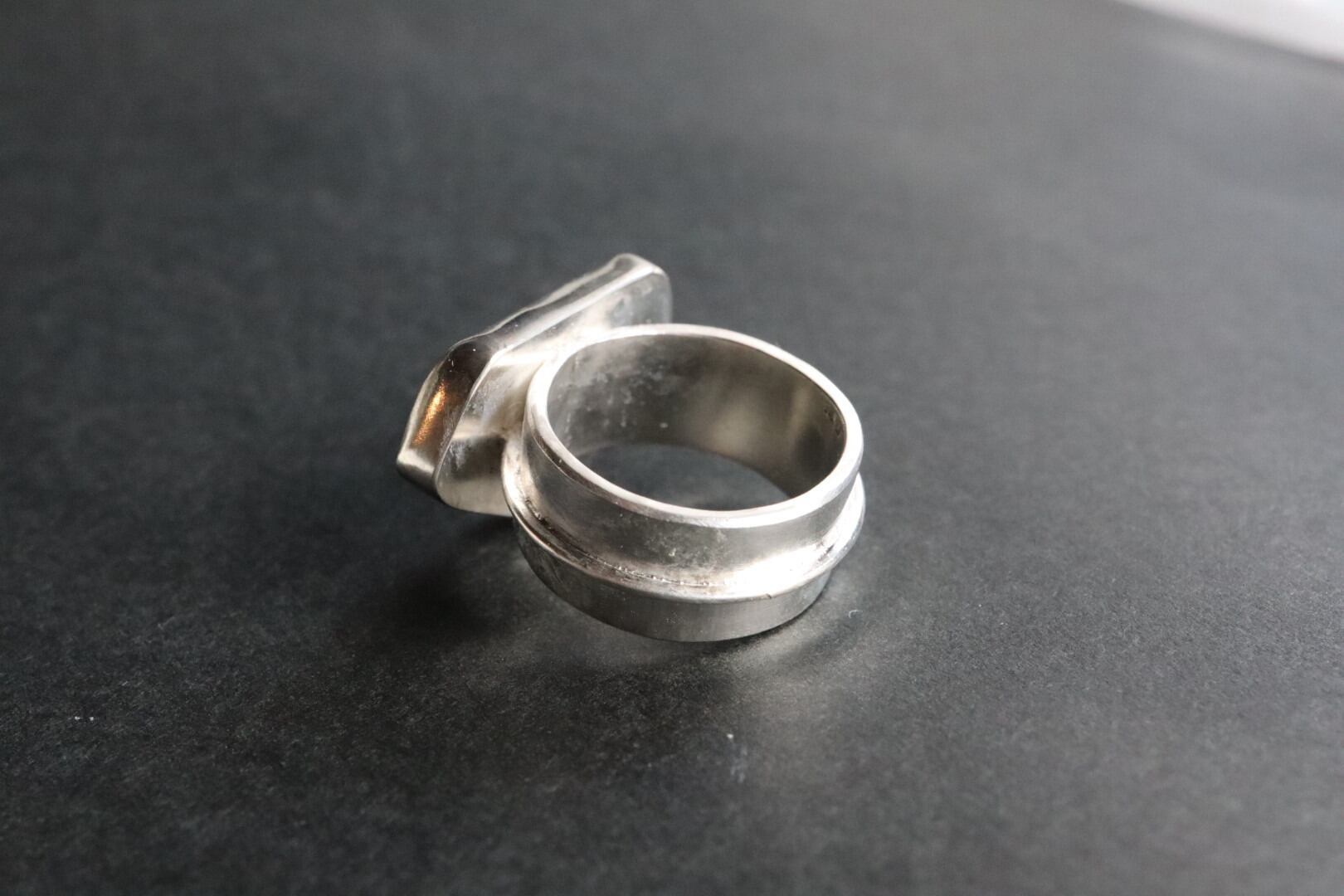 ユニセックスで着けていただける、海で拾われた陶器を使用したリングです。