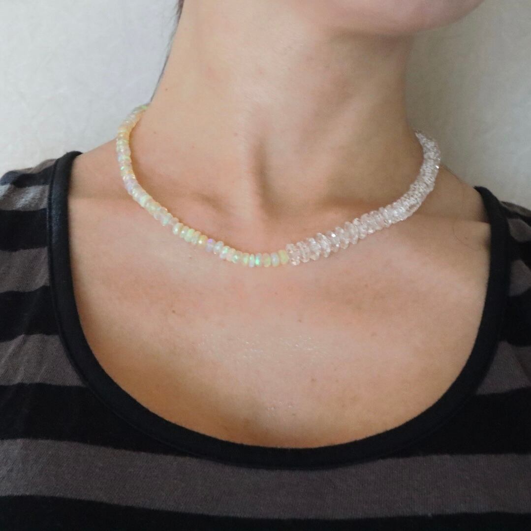 さりげない輝きのオパールとグラデーションになっているクォーツが個性的なデザインです。